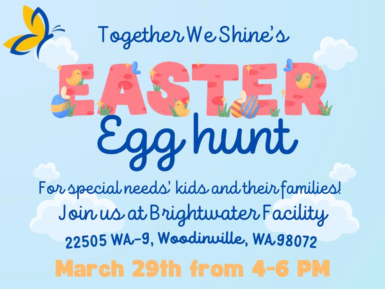 Together We Shine's first big event. Come join us for a day of fun and an Easter egg hunt!